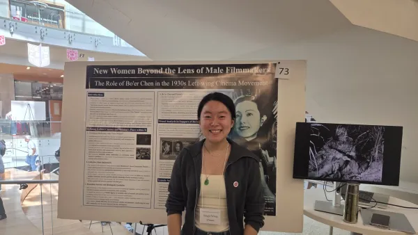 Congrats to FMS major Yingyi Wang, who presented her research paper "New Women Beyond the Lens of Male Filmmakers: Bo'er Chen and Her Figure in the 1930s Chinese Leftwing Cinema Movement" at the Fall 2025 Undergraduate Research Symposium.